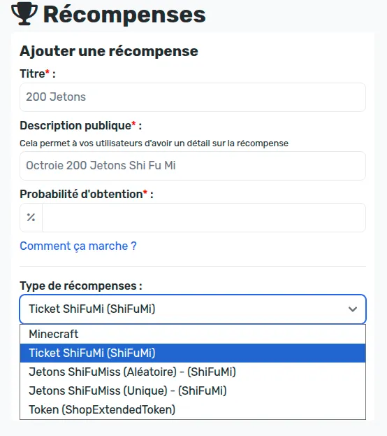 Ajout de récompenses de vote permettant de gagner des tickets ShiFuMi